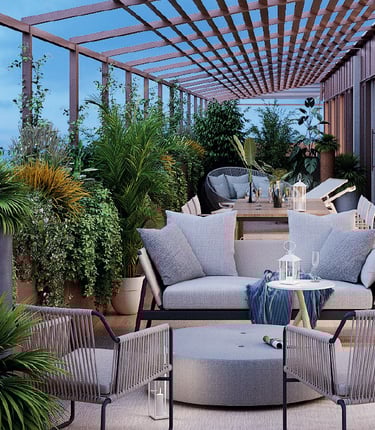 Firmato da AG&P greenscape, studio paesaggistico di fama internazionale, il giardino si arrampica sulle facciate interne e avvolge logge e terrazzi con arbusti e rampicanti, trasformando il verde in un segno architettonico distintivo.